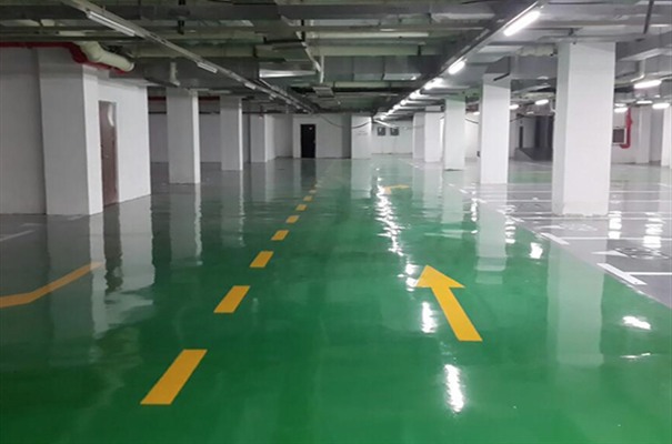 地下車庫每天有大量車子進出。時間長了會對地面碾壓造成脫皮、起塵等問題,因此選擇車庫水性環氧地坪漆是必然的,它具有整潔光亮、不起塵、耐磨防滑易清理等特點。