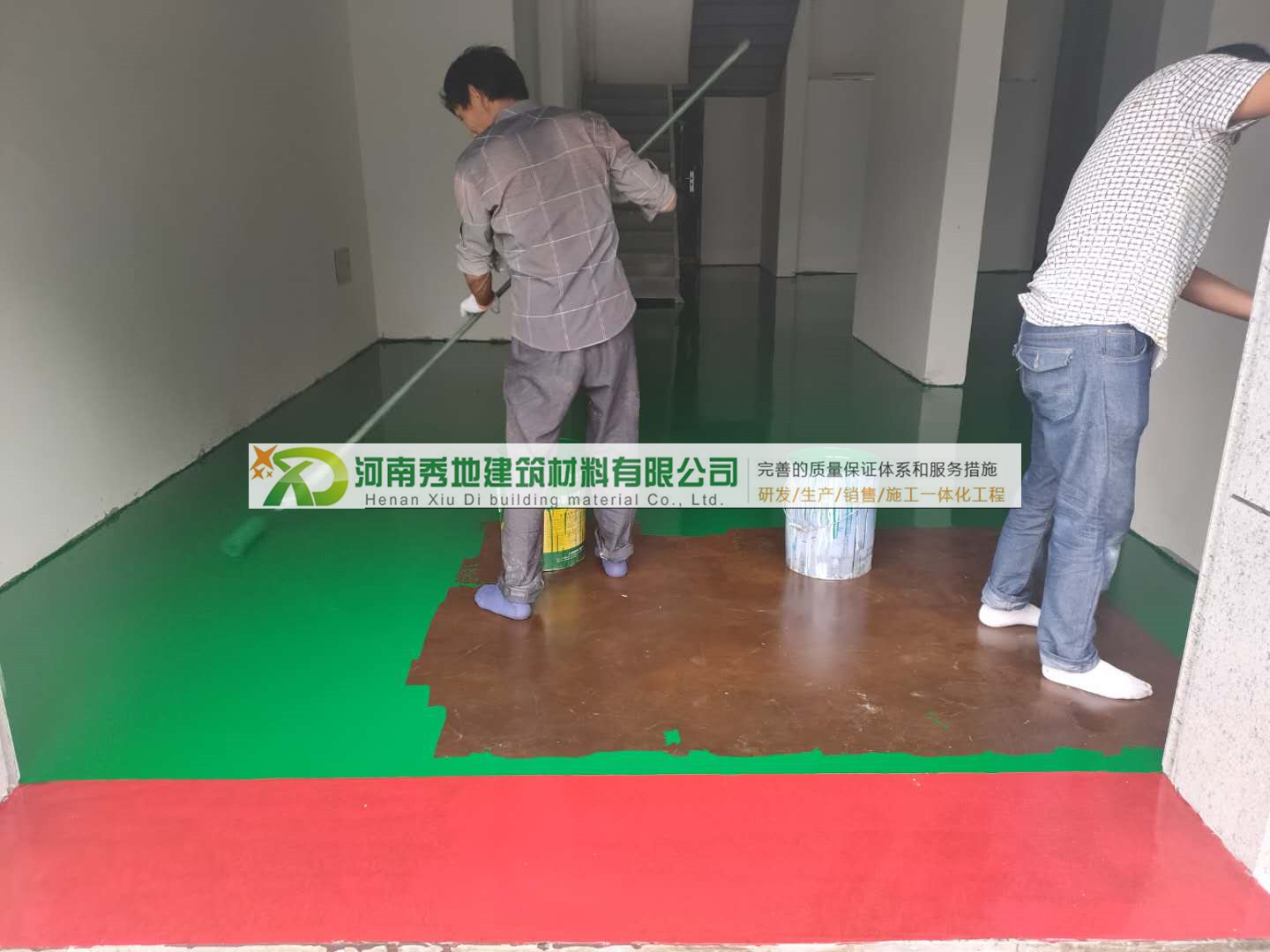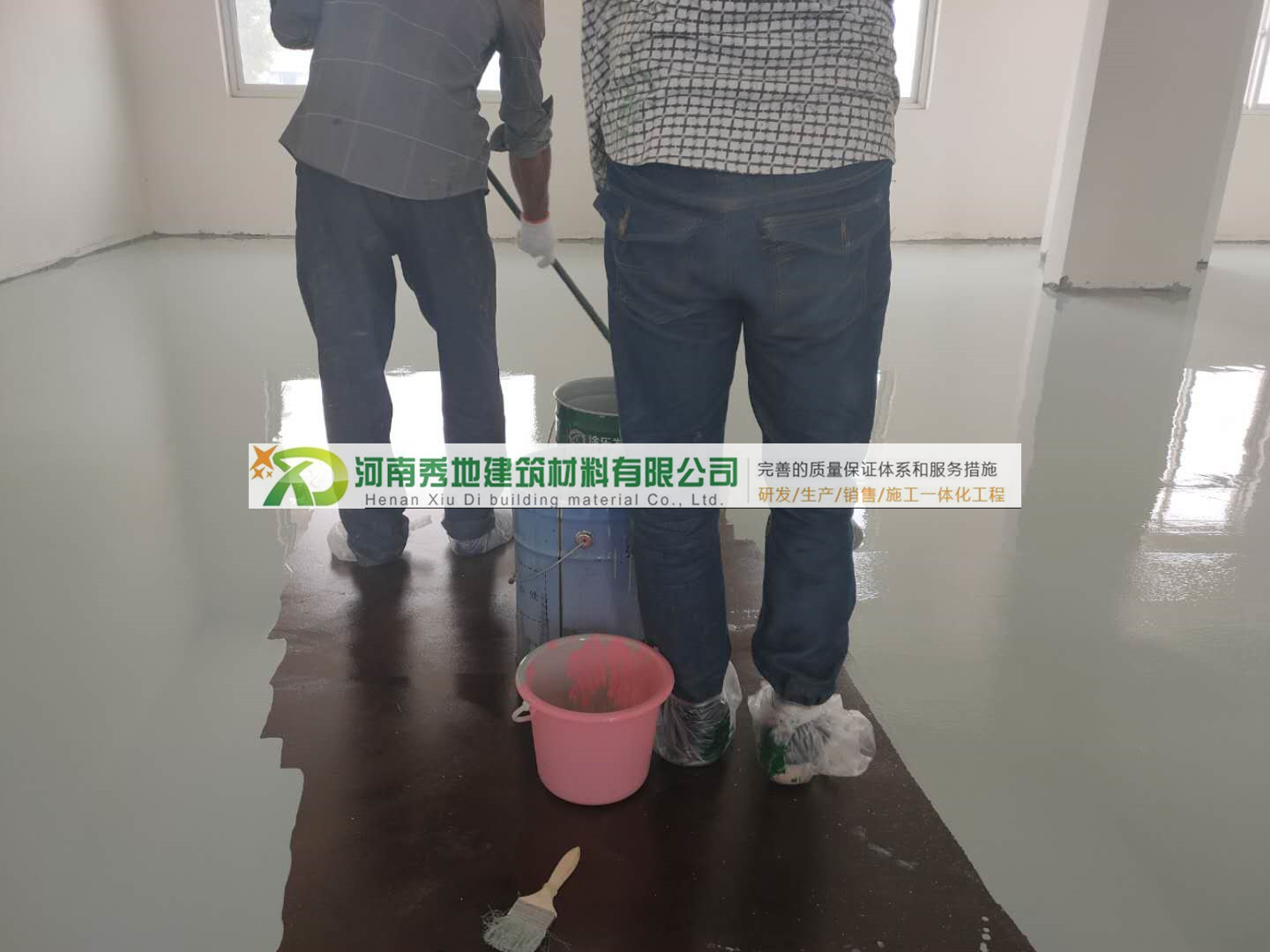 底漆按廠家規定配比,用電子稱計量好,混合之后充分攪拌均勻后,用刮涂或者滾涂的方式施工。底漆完全干燥后方可進行下一工序施工(干燥時間和溫度、濕度關系大,溫度25度左右24小時后可進行下一遍施工)。目的是增強地面和面層的附著力。