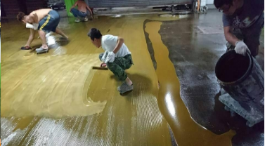 4、環(huán)氧膩子:將環(huán)氧雙組份加入適量膩子粉,用鏝刀將其均勻涂布一至兩道,增加地面的平整度;