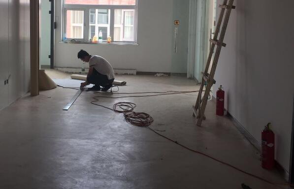 把地面清理干凈,清除浮灰、油污、和松動的雜物顆粒,鏟除突起物,如有較大裂縫,要提前填充平整. 這一步很簡單,就不配圖了.