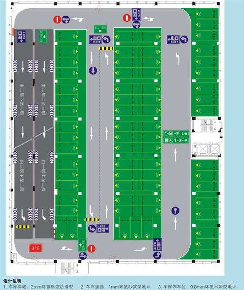 施工期間的機械布置主要有:地坪研磨機、單碟研磨機、攪拌器、濕度測量儀、帶齒鏝刀、滾筒、毛刷、分色紙等機具。